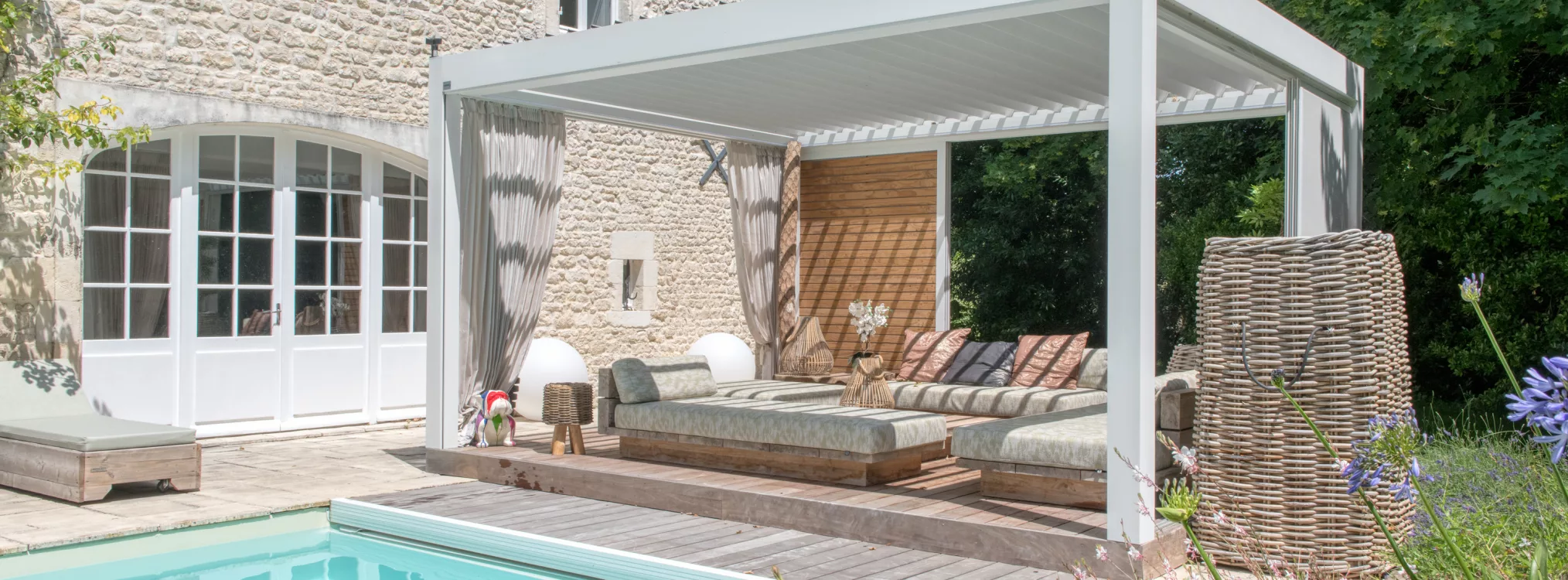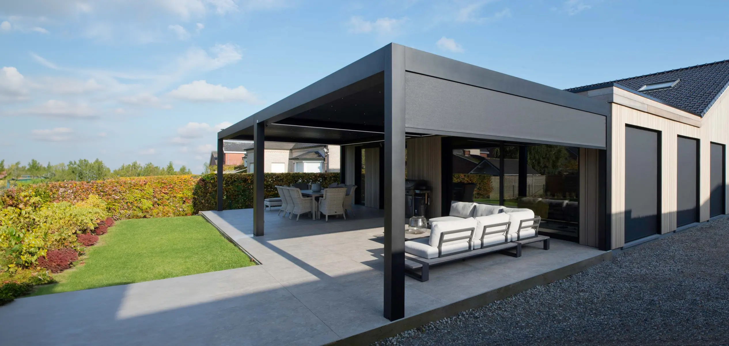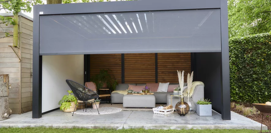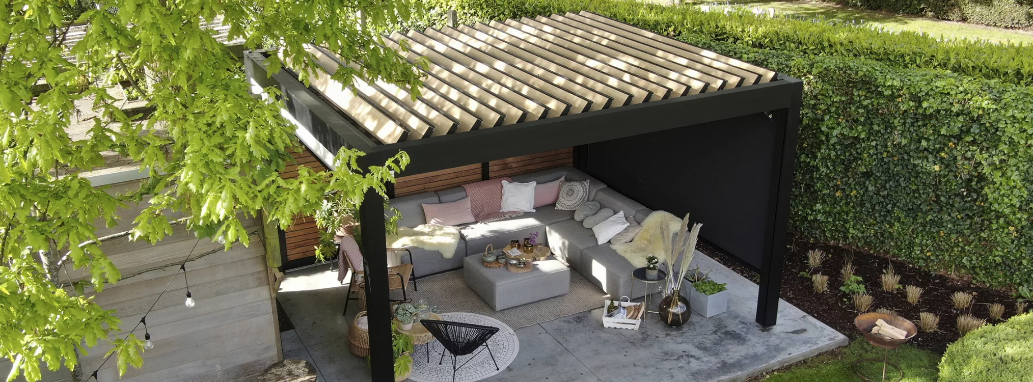 Avec son toit à lames motorisées, la pergola ORIG!N s’adapte facilement à vos besoins. Grâce aux capteurs de température et à la commande Somfy avec télécommande, vous pouvez ajuster la position des lames en fonction des conditions climatiques.